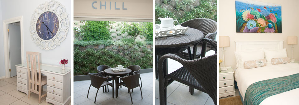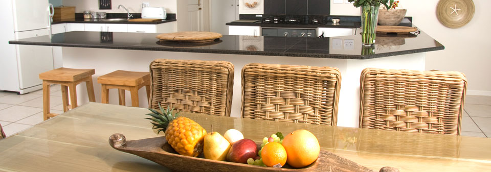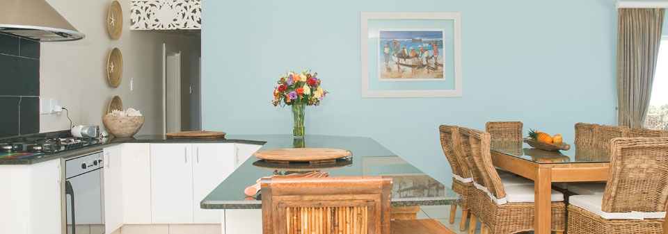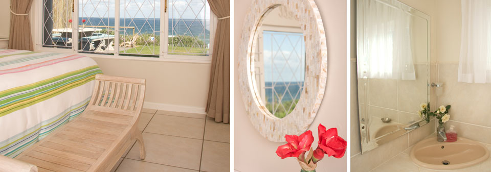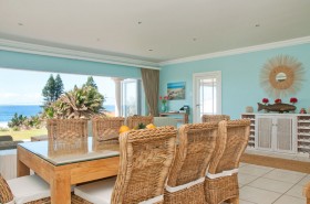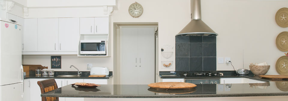 The Beach House has four tastefully decorated bedrooms, all with magnificent beach and sea views. The main bedroom features a king size bed and en suite bathroom with spacious shower, toilet and sink. Concealed in a cupboard, the TV provides viewing pleasure with a hospitality bouquet of DSTV channels.